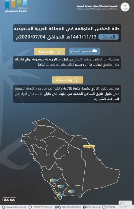 تعر ف على حالة الطقس المتوقعة غد ا السبت وأعلى درجة حرارة في مناطق المملكة صوت الجنوب